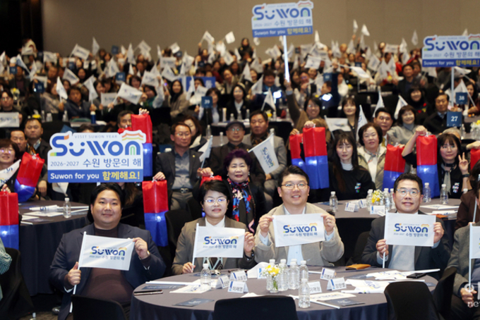 [아시아통신] 수원특례시의회(의장 이재식)는 2월 24일 수원컨벤션센터에서 열린 「수원 방문의 해 선포식」에 참석해 글로벌 관광도시로 도약하기 위한 힘찬 출발을 함께했다. 이날 행사에는 시 관계자와 관광업계 종사자, 시민 등 1,000여 명이 참석했으며, 방문의 해 선언과 퍼포먼스, 기념사와 축사, 시민 참여 캠페인 등이 진행됐다. 수원특례시의회에서는 의회운영위원장 최원용 의원(국민의힘, 영통2·3·망포1·2)을 비롯해 기획경제위원장 장정희 의원(더불어민주당, 권선2·곡선), 보건복지위원장 이희승 의원(더불어민주당, 영통2·3·망포1·2), 국민의힘 교섭단체 대표 박현수 의원(국민의힘, 평·금곡·호매실) 등 의장단이 참석했다. 또한 문화체육교육위원회 박영태 부위원장(더불어민주당, 행궁·지·우만1·2·인계), 현경환 의원(국민의힘, 파장·송죽·조원2), 기획경제위원회 강영우 의원(더불어민주당, 영화·조원1·연무), 홍종철 의원(국민의힘, 광교1·2), 보건복지위원회 정영모 의원(국민의힘, 영화·조원1·연무), 김은경 의원(더불어민주당, 세류1·2·3·권선1), 도시미래위원회 최정헌 부위원장(국민의힘, 정자1·2·3), 환경안전위원회 김경례 의원(더불어민주당,