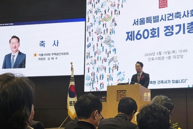 [아시아통신] 서울특별시의회 주택공간위원회 김태수 위원장(국민의힘, 성북구 제4선거구)이 3월 19일(목) 오후 3시 서초구 건축사회관 대강당에서 개최된 ‘서울특별시건축사회 제60회 정기총회’에 참석해 축사를 전하고, 서울시 건축문화 발전에 기여한 우수 건축사 10명에게 서울시의회 의장표창을 수여했다. 올해로 창립 60주년을 맞이한 서울특별시건축사회의 이번 정기총회에는 대한건축사협회 김재록 회장과 서울특별시건축사회 박성준 회장을 비롯한 대의원 및 주요 관계자들이 대거 참석해 자리를 빛냈다. 이날 김 위원장은 축사를 통해 60주년을 맞은 서울특별시건축사회 회원들에게 깊은 축하와 감사의 인사를 전하며, 최근 건설경기 위축과 건축 산업의 어려움을 극복하고 도시 경쟁력을 높이기 위한 서울시의 주요 정책 방향을 설명했다. 축사에 이어 평소 투철한 사명감과 책임감을 바탕으로 도시경관 개선 및 안전한 건축환경 조성 등 서울시 건축문화 발전에 크게 기여한 10명의 건축사에게 서울시의회 의장표창을 직접 수여하며 그간의 헌신과 노고를 치하하는 뜻깊은 시간을 가졌다. 끝으로 김 위원장은 "혁신과 변화를 이끄는 주역은 바로 서울의 미래를 함께 만들어가는 건축사 여러분"이라고 격려