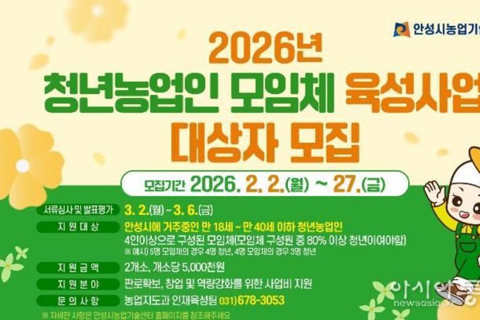 [아시아통신] 안성시는 2026년 1월 21일부터 30일까지 주소지 읍‧면‧동 행정복지센터에서 ‘2026년 상반기 지역사회서비스투자사업’ 이용자 모집을 실시한다. 지역사회서비스투자사업은 지역 특성과 주민의 다양한 복지수요에 맞춘 사회서비스를 지원하는 사업으로, 이용권(바우처) 형태로 서비스를 제공한다. 이번 상반기 모집에서는 우리아이심리지원 등 8개 사업, 총 415명을 모집하며, 선착순이 아닌 신청기간 내 접수자 중 욕구기준 충족도와 우선순위를 고려하여 이용자를 선정한다. 선정된 대상자에게는 소득 수준에 따라 차등적인 정부지원금이 제공되며, 본인부담금을 납부하면 3월부터 서비스를 이용할 수 있다. 일부 사업의 경우, 사회서비스 고도화 추진에 따라 본인부담금을 일정 범위 내에서 차등 적용하는 가격탄력제가 도입된다. 자세한 모집 내용과 사업별 기준은 안성시청 누리집을 참고하거나, 해당 읍‧면‧동 행정복지센터에 문의하면 된다. 안성시 관계자는 “이번 사업을 통해 지역의 특성과 시민의 수요에 맞춘 다양한 사회서비스를 지속적으로 발굴하고 확대해 나가겠다”고 말했다.