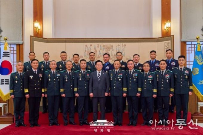 [아시아통신] 이재명 대통령은 오늘 오후 중장 진급 및 보직 신고, 그리고 수치 수여식을 개최했다. 오늘 수여식에는 박성제 특수전사령관, 박규백 해군사관학교장, 김준호 국방정보본부장 등 총 20명의 진급자가 참석했다. 수여식 후 이 대통령은 진급자들과 환담을 진행했다. 환담에서 이 대통령은 군이 국민의 군대로서 다시 국민에게 신뢰받을 수 있는 군대로 거듭날 수 있도록 최선을 다해 달라고 당부했다. 또한 자주국방의 중요성을 거듭 강조하며 우리나라의 군사 방위 능력에 대해 자긍심을 가져도 좋다고 격려했다.