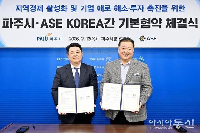 [아시아통신] 파주시는 기업 애로사항을 해소하고 지역 경제를 활성화하기 위해 문발2 산업단지 입주 기업인 에이에스이 코리아(ASE Korea)와 ‘폐수 연계 처리 협약’을 체결했다. 이번 협약은 에이에스이 코리아(ASE Korea)의 사업 확장 과정에서 발생하는 폐수 처리 문제를 해소하고, 기업의 안정적인 투자와 성장을 지원하기 위해 추진됐다. 에이에스이 코리아(ASE Korea)는 스마트폰 모듈과 자동차용 반도체 사업 등 다양한 사업을 추진하고 있으며, 2025년 중반기에 신사업 추진을 위한 투자 확대를 준비해왔다. 그러나 사업 확장에 따라 증가하는 폐수가 하수도법상 방류수 수질 기준을 충족하는 데 한계에 이르면서 사업 추진에 어려움을 겪어왔다. 이에 에이에스이 코리아(ASE Korea)는 자체 폐수처리시설을 설치·운영해 왔으나, 확장에 따른 추가 폐수 발생량까지 자체적으로 처리하는 데에는 현실적인 제약이 발생했다며 공공하수처리시설과의 연계 처리를 파주시에 요청했다. 파주시는 공공하수처리시설의 시설용량과 폐수 유입에 따른 문제점 등을 면밀히 검토했고, 공공하수처리에 지장을 주지 않으면서도 기업