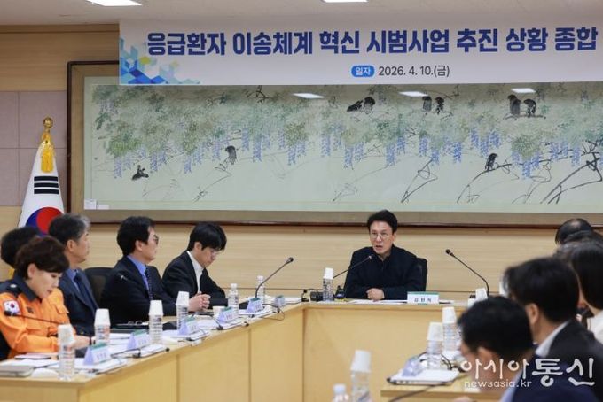 [아시아통신] 김민석 국무총리는 어제 전북지역에 이어 오늘 4월 10일 광주지역 응급 및 진료체계 현장을 점검하고, 응급환자 이송체계 혁신 시범지역(전북·전남·광주) 전체에 대한 종합 간담회를 개최하여 3월부터 진행 중인 시범사업 추진상황을 중간 점검하고 개선방향을 논의했다. 김 총리는 10일 오전, 먼저 광주 119구급상황관리센터, 광주·전라 광역상황실, 전남대병원 응급센터를 방문하여 광주형 응급환자 이송체계 실시간 작동상황을 직접 확인하고, 현장 관계자들의 애로를 청취했다 이어, 김 총리가 주재한 종합 간담회에서는 시범사업을 추진 중인 전북·전남·광주지역의 소방·병원 등 응급 현장 관계자는 물론, 지자체 및 복지부·교육부·국무조정실 등 중앙부처가 함께 참석하여, 지역별 이송체계의 운영성과, 정부 혁신안의 개선방향을 논의했다. ❶ 광주 119구급상황관리센터 방문 김 총리는 먼저 광주 119구급상황관리센터를 방문하여 정부 혁신안을 광주지역 여건에 알맞게 운영 중인 광주지역 응급환자 이송체계를 보고받고, 응급환자 이송 현장을 점검했다. 광주지역은 구급대에서 수용 가능한 병원을 3개 이상
