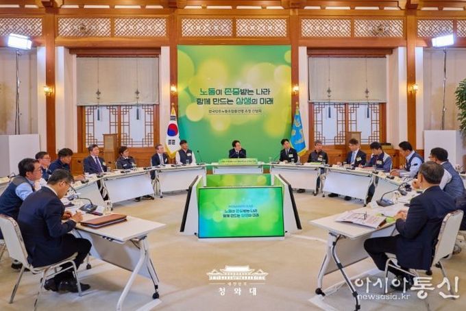[아시아통신] 이재명 대통령이 "기간제법이 2년을 넘는 상시 경우에는 상시 고용으로 전환하기 위해서 만든 법인데, 사실은 2년 이상 절대 고용 금지법이 되어버렸다"며 "현실적으로 대안을 만들면 좋겠다"고 말했다. 이 대통령은 10일 오전 청와대에서 열린 전국민주노동조합총연맹(민주노총) 초청 간담회에서 이같이 말하고 노동계 측의 논의를 요청했다. 먼저 이 대통령은 모두발언을 통해 "우리 국민주권 정부는 노동 존중 사회를 위한 나름의 정책적 노력을, 최선을 다하고 있다"며 "일터에서 노동자들이 죽어가는 산업재해, 사망자를 줄이기 위해서 최선을 다하고 있는데 최근에 조금씩 성과들이 나는 것 같다"고 말했다. 이어 "산업재해 문제는 노동계에서의 참여도 중요한 것 같다"며 "산업 현장의 안전 시설 미비나 안전 조치 부족 문제는 정부의 단속만으로는 어려워서 노동계도 단속이나 사전 관리에 좀 많이 참여했으면 좋겠다"고 덧붙였다. 특히 "소규모 산업 현장에서 산업재해가 줄어들지 않고 있는 게 문제인데 정부로서 가능한 방법이 뭔지를 잘 찾아보겠다"고 강조했다. 이 대통령은 노동계에 부탁드리고 싶은