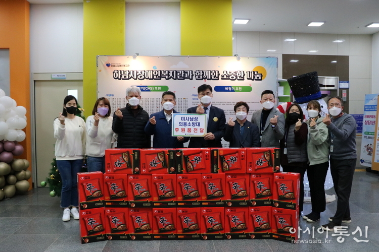아시아통신 박윤하 기자 | 미사남성의용소방대(대장 위승헌)은 지난 9일 하남시장애인복지관(관장 민복기)을 방문하여 재가 장애인들이 따뜻한 겨울을 지낼 수 있도록 라면 30박스를 전달하였다. 기부해주신 후원품은 지역사회 취약계층 재가 장애인 가정에 전달될 예정이다. 위승헌 대장은 “지역사회 장애인들의 따뜻한 겨울나기를 위해 장애인가정에 조금이나마 도움이 되고자 후원하게 되었으며 지역사회 재가장애인들을 위해 지속적인 나눔으로 연계될 수 있도록 더욱 노력하겠다.”고 말했다. 미사남성의용소방대는 화재예방과 순찰, 응급환자 발생 시 심폐소생술 등 지역주민의 생명과 재산 보호에 노력하는 하남안전지킴이 역할을 하고 있다. 이에 민복기 관장은 ‘지역사회 안전지킴이 역할을 하고 있는 미사남성의용소방대와 함께 나눔을 실천할 수 있어 기쁘게 생각하며 앞으로 장애인복지를 위해 최선을 다 하겠다"고 전했다. 하남시장애인복지관은 ‘소통과 섬김으로 나눔을 실천하는 하남시장애인복지관’ 이라는 미션 하에 장애인복지의 전문성과 더불어 지역사회의 참여를 높여 효과적인 복지서비스를 제공하기 위해 다양한 프로그램을 운영하고 있다. 자세한 내용은 하남시장애인복지관 홈페이지(http://www.hanamrehab.or.kr)및 대표전화(031-794-2266)를 통해 문의할 수 있다.