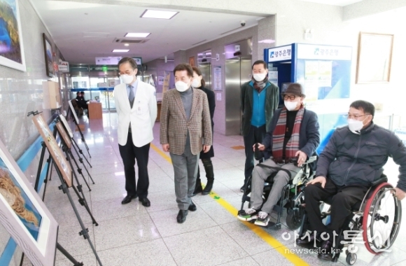 아시아통신 박해웅 기자 | 구충곤 화순군수가 21일 호남권역재활병원을 방문해 장애인·비장애인이 함께하는 ‘제7회 호남권역재활병원 어울림展’ 참여 작가들을 응원했다.