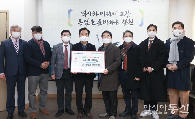 아시아통신 박해웅 기자 | 강원도 춘천시 소재 강원대학교 총동창회는 철원군청을 방문해 생계에 어려움이 있으나 복지제도권 밖에 있어 도움을 받지 못하는 사각지대를 후원하기 위해 100만원을 두루웰 천사 기금으로 기탁했다