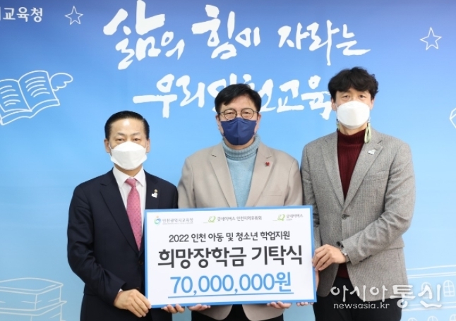 아시아통신 김용환 기자 | 인천광역시교육청은 굿네이버스 인천지역후원회 및 인천본부와 관내 학생들에게 장학금을 지원하기로 했다고 22일 밝혔다.