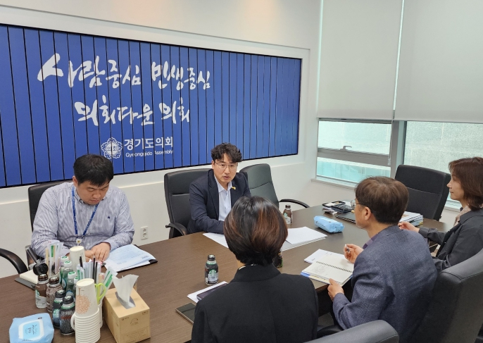 [아시아통신] 경기도의회 교육기획위원회 조성환 부위원장(더불어민주당,파주 2)은 4월 18일 경기도의회 교육기획전문위원실 회의실에서 학생들에게 제공된 스마트단말기의 컨텐츠의 부족과 이용편리성을 위한 방안을 마련하기 위해 담당자들과 정담회를 가졌다.