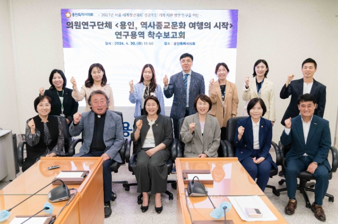 [아시아통신] 용인특례시의회 의원연구단체 「용인, 역사종교문화여행의 시작 - '2027년 서울 세계청년대회' 성공적인 개최 지원 방안 연구」(대표 김희영)이 지난 30일 대회의실에서 '용인시 김대건신부 지역문화유적을 활용한 관광콘텐츠 방향성 연구 용역'에 대한 착수보고회를 개최했다.