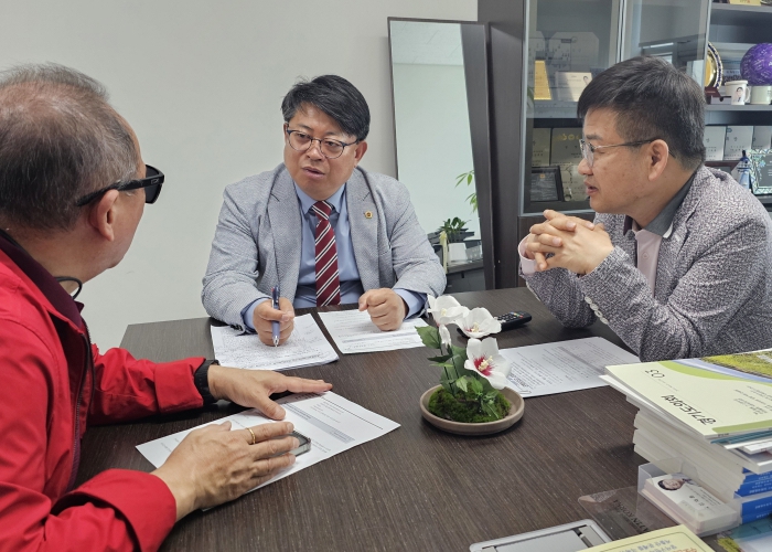 [아시아통신] 김재훈 경기도의원(보건복지위원회 부위원장, 국민의힘, 안양4)은 4월 30일 경기도의회 사무실에서 경기도 시각장애인연합회 소속 윤완석, 한동호 회원과 함께 ‘시각 장애인을 위한 시야 공유 솔루션’ 개발의 필요성에 대한 정담회를 개최했다.