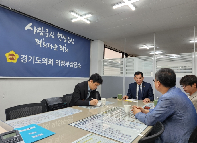 [아시아통신] 경기도의회 문화체육관광위원회 이영봉 위원장(더불어민주당, 의정부2)은 지난 7일 도의회 의정부상담소에서 (사)경기민예총 김태현 이사장, 김성수 사무총장, (사)한국민족예술단체총연합 강욱천 사무총장 등을 만나 ‘2024년 세계예술인한반도평화대회’ 예산 확충 요청 건의안 등 현안에 대해 논의하는 시간을 가졌다.