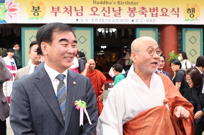 염 의장은 육법공양을 시작으로 헌화, 관불, 봉축사, 봉축법어, 봉축 발원문 낭독 순으로 이어진 불교 의식에 참여하며 불교계에 축하를 전했다.
