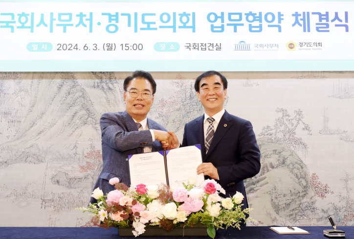 [아시아통신] 경기도의회가 3일 국회사무처와 의정연수 분야에서 상호협력을 강화하기 위한 협약을 체결했다.