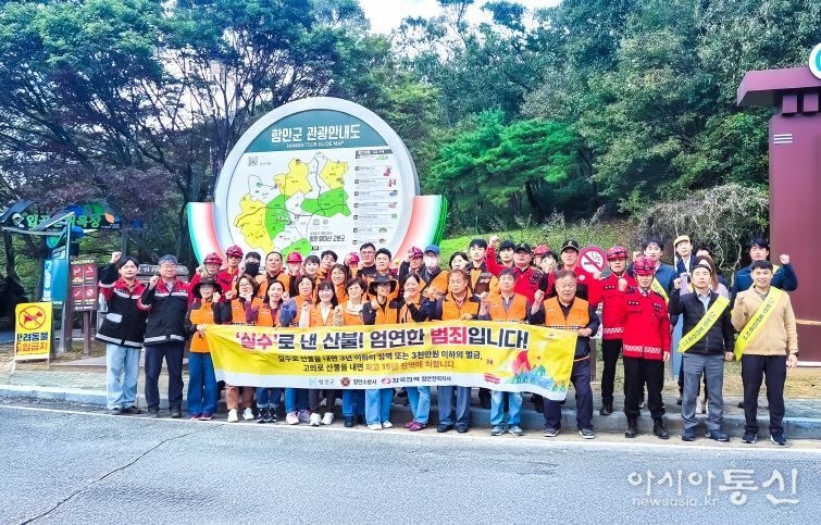 [아시아통신] 함안군은 지난 24일 함안소방서, 함안의용소방대, 한국전력 함안지사와 함께 가을철 산불 조심 기간을 맞아 등산객이 많이 찾는 입곡군립공원에서 산불예방 캠페인을 실시했다고 밝혔다.