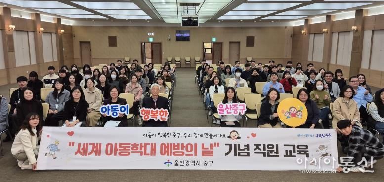 [아시아통신] 울산 중구가 제19회 세계 아동학대 예방의 날을 맞아 11월 13일 오전 10시 중구청 대회의실에서 직원 200여 명을 대상으로 아동학대 예방 직원 교육을 진행했다.