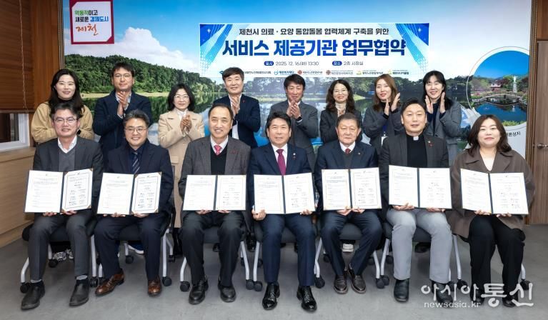 [아시아통신] 제천시는 16일 시청 시장실에서 관내 사회복지기관 및 단체와 함께 의료·요양 통합돌봄사업 추진을 위한 업무협약을 체결하고 제천형 통합돌봄을 본격 추진한다고 밝혔다.