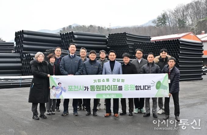[아시아통신] 포천시는 지난 16일 기업 경영 애로를 청취하고 현장의 의견을 수렴하기 위해 신북면에 위치한 동원파이프를 방문했다.