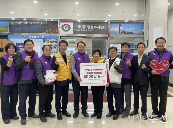 [아시아통신] 구리시 수택3동 주민자치회는 지난 12월 22일 지역 내 어려운 이웃을 지원하기 위해 적십자 특별회비 100만 원을 대한적십자사에 전달했다.