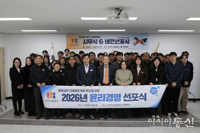 [아시아통신] 파주도시관광공사는 지난 1월 2일 본청 대회의실에서 ‘2026년 윤리경영 선포식’을 개최하여 청렴과 인권을 기반으로 한 윤리경영 실천 의지를 대내외에 공식 선언했다.