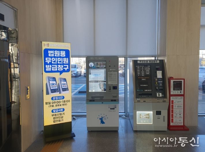 대법원 통합무인민원발급기는 ▲법인인감증명서 ▲법인등기사항증명서 ▲부동산등기사항증명서 등 법원 관련 민원서류 3종을 즉시 발급할 수 있는 기기로, 발급 수수료는 1통당 1,000원이며 운영시간은 평일 오전 9시부터 오후 6시까지다.