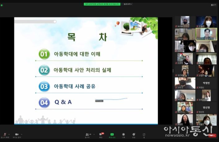 23일 진행되는 연수는 아동학대 예방 교육과 협력수업의 이해와 실제의 내용으로 운영된다.