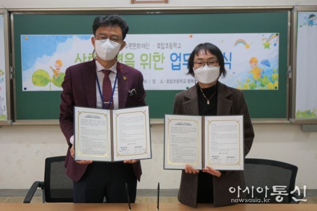 아시아통신 박해성 기자 | 수원문화재단(대표이사 길영배)은 23일 효탑초등학교(교장 채규조)와 어린이 상상놀이터 운영을 위한 업무협약을 체결했다.