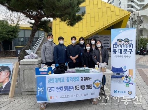 아시아통신 박해성 기자 | 모두가 안전한 여성친화도시 동대문구를 만들기 위해 동대문구, 동대문경찰서, 관내 대학교(경희대, 서울시립대, 한국외국어대) 총학생회가 힘을 모아 23일부터 31일까지 각 대학교 캠퍼스 내에서 범죄 예방 캠페인을 실시한다.
