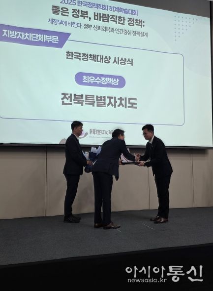 [아시아통신] 전북특별자치도는 8월 25일 부산항국제전시컨벤션센터에서 열린 제14회 한국정책대상 시상식에서 지방자치단체 부문 정책상을 수상했다고 밝혔다.