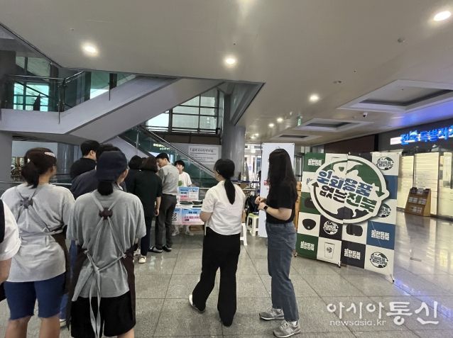 도는 26일 도청 1층 로비에서'일회용품 없는 전북, 한 걸음 더!' 캠페인을 열고, 생활 속 자원순환 실천을 직접 체험할 수 있는 다양한 프로그램을 운영했다.