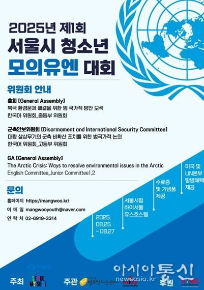 [아시아통신] 지난 8월 25일부터 27일까지 서울 청소년 60명이 각국의 모의 유엔 대사로 변신해 북극 환경문제와 대량살상무기 군축·비확산 등 국제 현안을 두고 열띤 토론을 벌이는 ‘2025년 서울시 청소년 모의유엔 대회’가 열렸다.