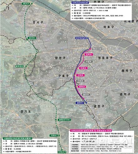 ‘서부간선도로 일반도로화 및 친환경공간 조성공사’는 서부간선 지하도로 및 광명-서울 고속도로와 연계하여 서부간선 상부도로의 구조·기능을 개편하기 위해 단절된 안양천과의 접근성 개선을 통해 수변 친화도시를 조성하고, 일반도로화로 차로폭 축소, 녹지공간 확보 등 친환경 주민 편의공간을 조성하는 것이 목적이다.