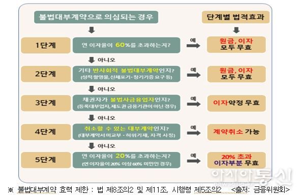 ‘불법 대부계약 효력 제한 제도’는 불법적인 계약으로 체결된 대출은 원금과 이자 모두 갚을 의무가 없도록 명확히 규정하고 있다.