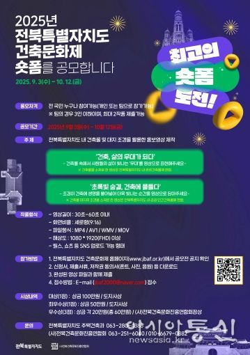 [아시아통신] 전북특별자치도가 오는 11월 열리는 ‘제26회 전북특별자치도 건축문화제’를 앞두고 도민과 국민 누구나 참여할 수 있는 숏폼 영상 공모전을 연다.