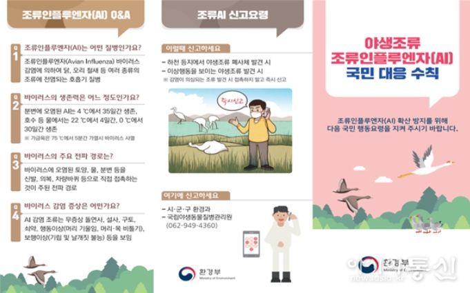 또한, 야생조류관련 질병 신고 및 대응 체계도 정비했다. 조류인플루엔자 폐사체 또는 의심개체가 발견되면 신속한 방역조치 등을 위해 관할 지자체와 국립야생동물질병관리원으로 즉시 신고하도록 절차를 개선했다.