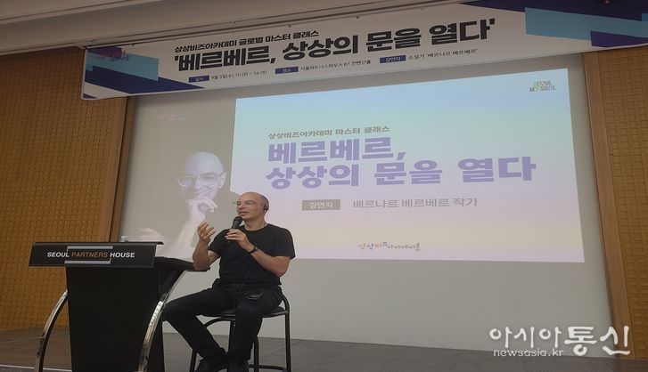 서울시는 9월 3일 오전 서울파트너스하우스에서 세계적인 베스트셀러 작가 베르나르 베르베르(Bernard Werber)를 초청해 단독 특강을 개최했다고 밝혔다. 이번 특강은 서울시가 웹툰·웹소설 청년 창작자 양성을 위해 운영 중인 ‘상상비즈아카데미’의 프로그램의 하나로 진행됐다.