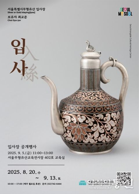 [아시아통신] 서울시가 가을의 문턱인 9월, 도심 곳곳에서 서울 고유의 전통 문화를 직접 체험할 수 있는 무형유산 공개행사를 개최한다. 이번 행사는 정교한 금속공예 기술인 ‘입사장’(5일)부터 조선왕실의 ‘차(茶) 문화’(13일), 해학이 넘치는 우리 전통의 ‘소리’(13일), 그리고 고향에 대한 그리움을 담은 실향민들의 ‘귀향제’(20일)까지, 다양한 무형유산의 진면목을 보여주는 자리로 구성됐다.