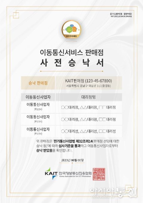 사전승낙은 이동통신사 대리점이 판매점과 거래를 맺기 전 일정 요건을 충족한 판매점에 개통 권한을 부여하는 제도로, 관련 인증표시가 부여된다.