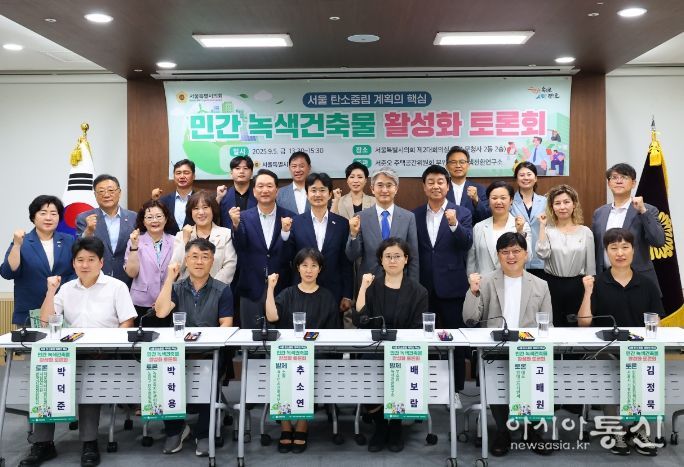[아시아통신] 서울시의회 서준오 의원(더불어민주당‧노원4)은 9월 5일, 서울시의회 제2대회의실에서 녹색전환연구소와 공동으로 ‘민간 녹색건축물 활성화 토론회’를 성공적으로 개최했다고 밝혔다. 이번 토론회는 서울시 탄소중립 실현의 핵심 분야인 건물 부문 온실가스 감축 과제를 점검하고, 민간 참여 확대를 통한 실행 방안을 모색하기 위해 마련됐다.