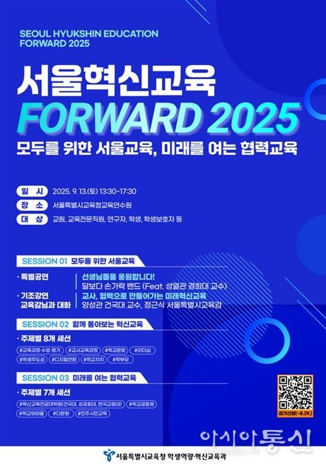 [아시아통신] 서울특별시교육청은 9월 13일 오후 1시 30분, 서울시교육청교육연수원에서'서울혁신교육 FORWARD 2025'를 개최한다.