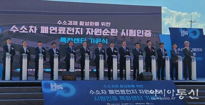 [아시아통신] 전북특별자치도는 11일 완주 테크노밸리2산업단지에서 국내 최초로 조성되는 ‘수소차 폐연료전지 자원순환 시험·인증센터’ 기공식을 개최했다고 밝혔다.