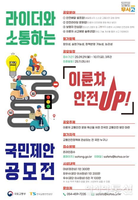 [아시아통신] 국토교통부와 한국교통안전공단은 대한민국의 교통안전을 더욱 강화하기 위해 '이륜차 안전UP! 정책 공모전'을 개최한다.