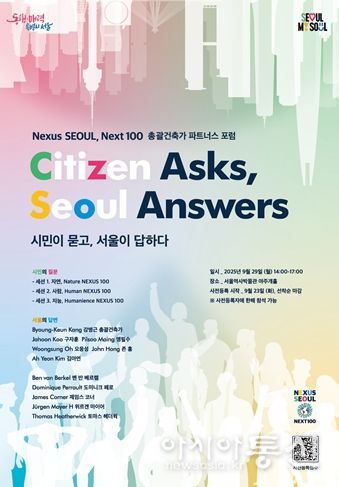 [아시아통신] 서울시는 오는 9월 29일 오후 2시, 서울역사박물관 야주개홀에서 『Nexus 서울 Next100: 제2차 총괄건축가 파트너스 포럼』을 개최한다. 이번 포럼은 지난 3월 21일 열린 제1차 포럼의 연속 기획으로, 제시된 미래도시 비전에 대해 이번에는 시민이 질문하고 전문가가 답하는 공론의 장이다.