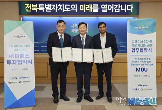 [아시아통신] 전북특별자치도는 완주 테크노밸리 2산단 소재 수소전문기업 ㈜아헤스(대표 이중희)가 인도 신재생에너지업체 GH2 Solar Ltd.와 수출 협력을 본격 추진한다고 23일 밝혔다.