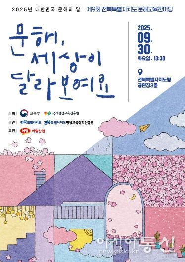 [아시아통신] 전북특별자치도평생교육장학진흥원은 오는 9월 30일 전북특별자치도청 공연장에서 '제9회 전북특별자치도 문해교육 한마당'을 개최한다.