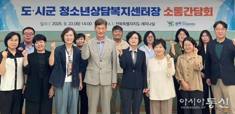 [아시아통신] 전북특별자치도 자치경찰위원회는 9월 23일 도청 세미나실에서 ‘도·시군 청소년상담복지센터장 소통 간담회’를 개최하고, 학교폭력 예방과 위기청소년 보호를 위한 다양한 현장의 목소리를 청취했다고 밝혔다.