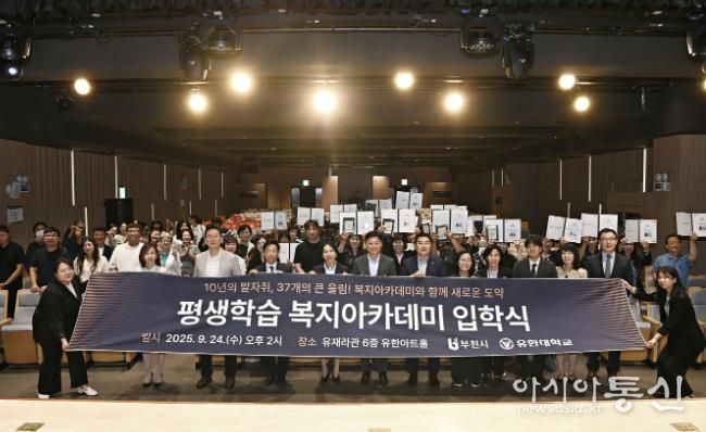 [아시아통신] 부천시는 지난 24일 유한대학교에서 ‘부천시·유한대학교 복지아카데미’ 입학식과 업무협약식을 열었다. 이번 행사는 조용익 부천시장과 장은영 유한대학교 총장을 비롯해 37개 동 지역사회보장협의체 위원장 등 150여 명이 참석한 가운데 진행됐다.