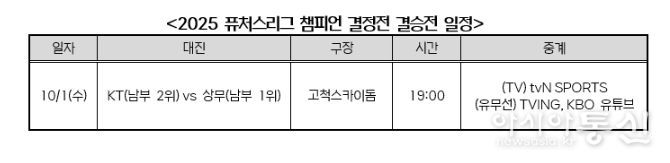 퓨처스리그 초대 챔피언이 결정될 결승전은 10월 1일(수) 오후 7시 고척스카이돔에서 열리며, 결승전은 TVING과 tvN SPORTS 및 KBO 유튜브를 통해 중계된다.