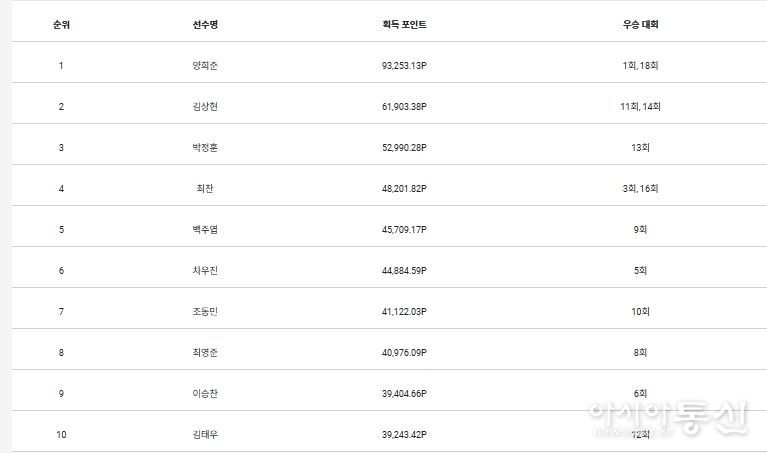 통합 포인트 1위는 결정됐다. 총 93,253,13포인트를 쌓은 양희준(25)이다.