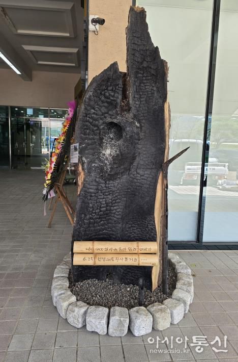 이번 전시는 단순한 예술 전시를 넘어, 올해 3월 말 옥종면에서 발생한 산불로 피해를 입은 900살 두양리 은행나무가 낙죽 작품으로 소생하는 감동의 스토리를 담아 관람객들의 큰 호응을 얻었다.