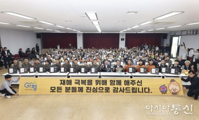[아시아통신] 가평군은 9월 29일 군청 대회의실에서 지난 7월 집중호우 피해 복구 현장에서 헌신한 군민과 기관‧단체 등을 초청해 표창장을 수여했다. 이번 행사는 재난 현장에서 보여준 희생과 봉사에 깊이 감사하는 마음을 담아 마련됐다.